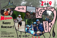 子どもの写真年賀状もいいのですが、手書きのイラストのおもしろさで家族の近況を報告しました。また、牧場の牛の模様は、地元の地図に北海道四季折々の自然をテーマに描きました。この自然に育まれている我が家の面々です。 これからは牧場の仲間が増える予定ですので、登場人物(動物)が毎年増えて、ますます賑やかな年賀状になるでしょう!毎年の年賀状書きが楽しみです。 |