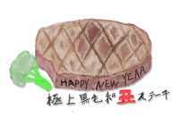 (いつも祖父母や伯父の家にお邪魔すると、お肉をご馳走になるそうで、「また食べたいです」などとメッセージを添えて年賀状を書いておりました。WACOMのタブレットを与えたら勝手に書いていたようです。ブロッコリーが上手だと思いました。(父))