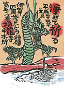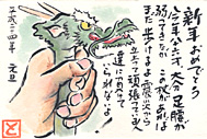 数年前から羊毛フェルトで立体の干支を創って年賀状を制作しています。ちょっと笑えるような、そして見るだけで癒されるようなモノを1枚の年賀状で表現したいなぁ・・・と毎年頭をひねっています。今回は世の中のお役に立つと辰をかけて文字にしてみました。これを見て楽しい気分になっていただけたらうれしいです。 |