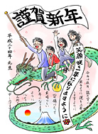 元々、年賀状というものが好きで、毎年毎年、アイディアをひねり出し、温かみとユーモアのある作品づくりを心がけています。実は、このアイディア、始めは息子をモデルにして実写でつくりたかったのですが、制作日数と予算、何よりも本人の辞退によって、あえなく却下となりました。こうして賞をいただきましたことを考えますと、むしろ実写化という暴挙?に走らず良かったのかもしれません。 年賀状は日本の守るべき伝統文化だと思います。「心に届け!年賀状コンテスト」はその年賀状の良さを伝える素晴らしい活動の一つです。今後もコンテストが長く続きますことを心より願います。 |