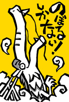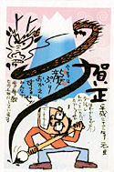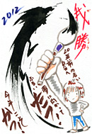 ●想定ターゲット●幼児〜40代ぐらいまでの男女(友人・親戚など) ●アピールポイント● 一風変わった格好をした青年が、ひっくり返すとあら不思議。今年の干支、龍の顔に大変身。少し苦しいけれど、文字も「おめでとう」から「たつ年」にチェンジします。“見方を変えれば、世界が変わる”2012年は、素晴らしい発見が訪れることを期待します。 ●審査員コメント●見事としか言いようのない作品です。逆転の発想で非常にオリジナリティが高く、おそらくはプロであると思われますが、それを割引いても、印象に残ります。もらった人は、きっと逆さにしながら何度も見てため息をつくに違いありません。(田中) ●ほんのりするイラストです。(米嶋) ●逆さにすると龍になる…一度に二度おいしい、アイデアの詰まった作品ですね。(黒田) ●ひっくりかえすと というアイデアがいいですね。(梶谷) ●逆さまで届いてしまっても一瞬気づかないかも?面白い年賀状ですね。(堀) |