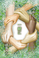 ●アピールポイント●昨年は子供と猫が家族に加わりました。写真は「家族の絆」と「奮起」をイメージ。「今年もみんなで」の言葉には、家族だけでなく日本に生きる全ての生き物「みんなで」という意味も 込めています。 ●審査員コメント●全てを見せないで手だけで家族構成や、物語を想像をさせる表現力が良いですね。(田中) ●猫の手は良いですね。(米嶋) ●シンプルながら強いメッセージと温かな気持ちが伝わってきます。一緒に手を置きたくなりますね。(井須) ●手だけしか登場してないけど、家族一人ひとりがわかる素敵な作品ですね。(黒田) ●猫の手がかわいいですね(梶谷) ●猫の手も入って、「家族全員」の温かさが感じられると思います。(堀) ●家族の絆がひしひし感じられる作品だと思いました。猫の手も可愛い!(高置) |