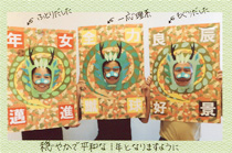 ●想定ターゲット●お世話になった人 ●アピールポイント● 世の中の役に立ちたい・・・そんな気持ちを込めて辰が書き初めしているところを表現しました。言葉だけではちょっぴり気恥ずかしいので辰の人形に身代わりになって宣言してもらいました。辰は羊毛フェルトで制作しました。 ●審査員コメント●素人の作品ではないですね。これ。さりげなく書道を書かせ、それがメッセージになっている。構図、発想、バランス、均整がとれた良い作品です。(田中) ●どのように作ったのでしょうか?素晴らしい作品です。(米嶋) ●辰の人形も手作りということで、全体的にとても凝った作品に仕上がってますね。完成度が高いと感じました。(黒田) ●辰の人形がかわいらしいですね。(梶谷) ●一番のメッセージは半紙に書かれた文字の中というのが、作者さんのひかえめな人柄なのかなと思います。(堀) この度は沢山の応募の中から佳作に選考していただき誠にありがとうございました。大変うれしく思っております。