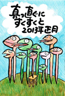 今年で第6回目となった「心に届け!年賀状コンテスト」。 思いを込めた直筆メッセージ(筆跡があること)が応募の条件になっているのは、 主催者の筆跡を残す支援活動をしていきたいという想いがその根源にあるからです。 デジタル化が進んだ今だからこそ、手書きの文字を見るとホッとします。旧友から届く年賀状を見て 「あの子の文字、ぜんぜん変わっていない!」と途端になつかしく感じることはありませんか。 手書き文字には自然と書き手の人柄があらわれます。それが直筆メッセージのよさであり、 長く伝え残していきたい文化でもあります。年賀状は1年のはじまりを祝う最初のご挨拶。 身近な人に向けて、心から伝えたい気持ちを自分らしく表現できたら、まさにめでたい、最高の年明けになりそうです。(むらかみかずこ)