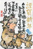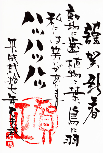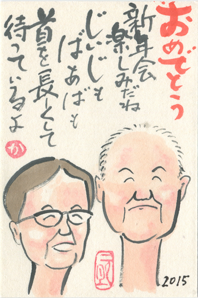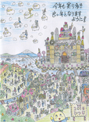 応募数が増え、さらに質の高い作品が非常に多く寄せられ、スタッフ一同、喜んでおります。ご応募を頂き本当にありがとうございました。今回はグランプリもそうですが、写真を使った年賀状に素晴らしい作品が増えているようです。楽しんで撮ったり、加工に工夫を凝らしたりしている様子が見てとれます。審査は点数をつけて一番多い点数の方がグランプリとなりますが、イラストと写真、絵手紙を同じ土俵に載せて審査する難しさもあり、審査は困難を極めます。結果としては誰がグランプリになってもおかしくない作品ばかりが残りました。いかがでしょうか。全てをご紹介出来ませんが、今回は選に漏れた作品も、その差は紙一重といっても良いでしょう。